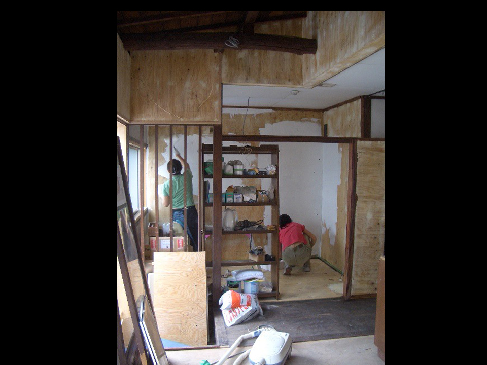 雑居ビルの屋上ペントハウスをフリースペースに改装 都会の屋上でBBQができるスポットとして人気です。 こちらもDIY全開で、夏の合宿のような現場でした。